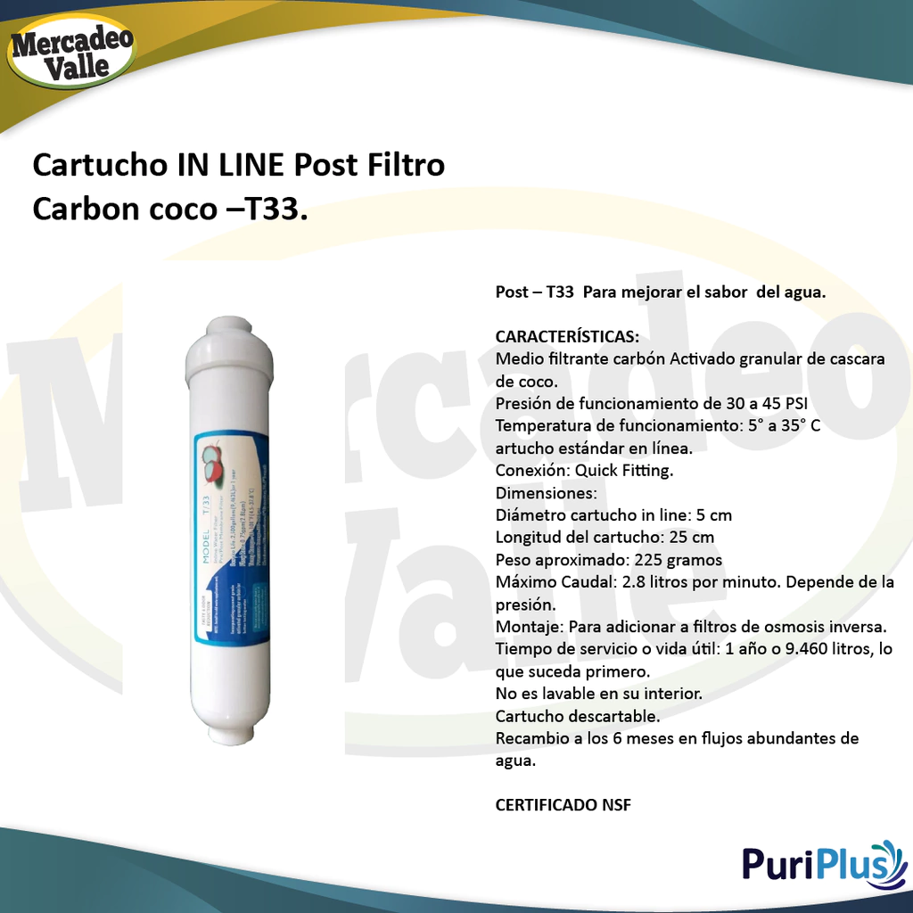 Es la tercera etapa de filtración de agua, la membrana de carbón está elaborada con carbón compacto, por la estructura única de sus poros es usada para la absorción de químicos, cloro y compuestos orgánicos volátiles, mejorando los aspectos estéticos del agua, elimina el mal olor, mejora la turbiedad mejora el sabor del agua, además que retiene igualmente sedimentos y otras partículas sólidas.