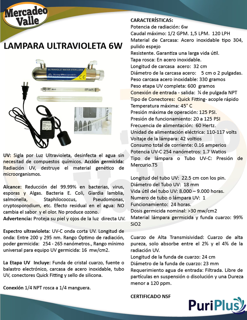 6. Ultravioleta 6w -UV (Elimina Virus- Bacterias)
